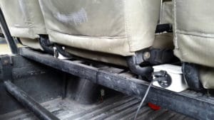 All of our vehicles are equipped with South African plug adaptor for charging video/camera batteries – large round 3 prong type. Each seat has a USB charger for charging video/camera batteries