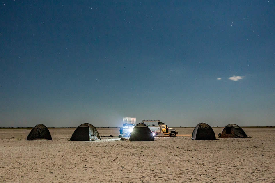 From Maun we travel to the Makgadikgadi Salt Pans approximately a 4-6 hour drive – vast shimmering salt flats on the edge of the Kalahari basin. The highlights of the Makgadikgadi vary dependant on the season and local conditions. The safari goes in search of the zebra migration along the Boteti River or will explore Nxai Pan famous for the movie “Roar Lions of the Kalahari“. The last night is spent sleeping out under a blanket of stars.